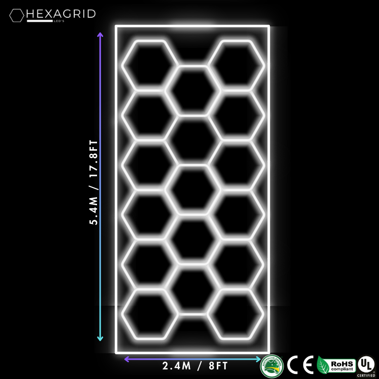 DIMMABLE Plug & Play HEXAGRID Kit- Hexagon Lights for Garages | Gyms | Barbers | Detailing